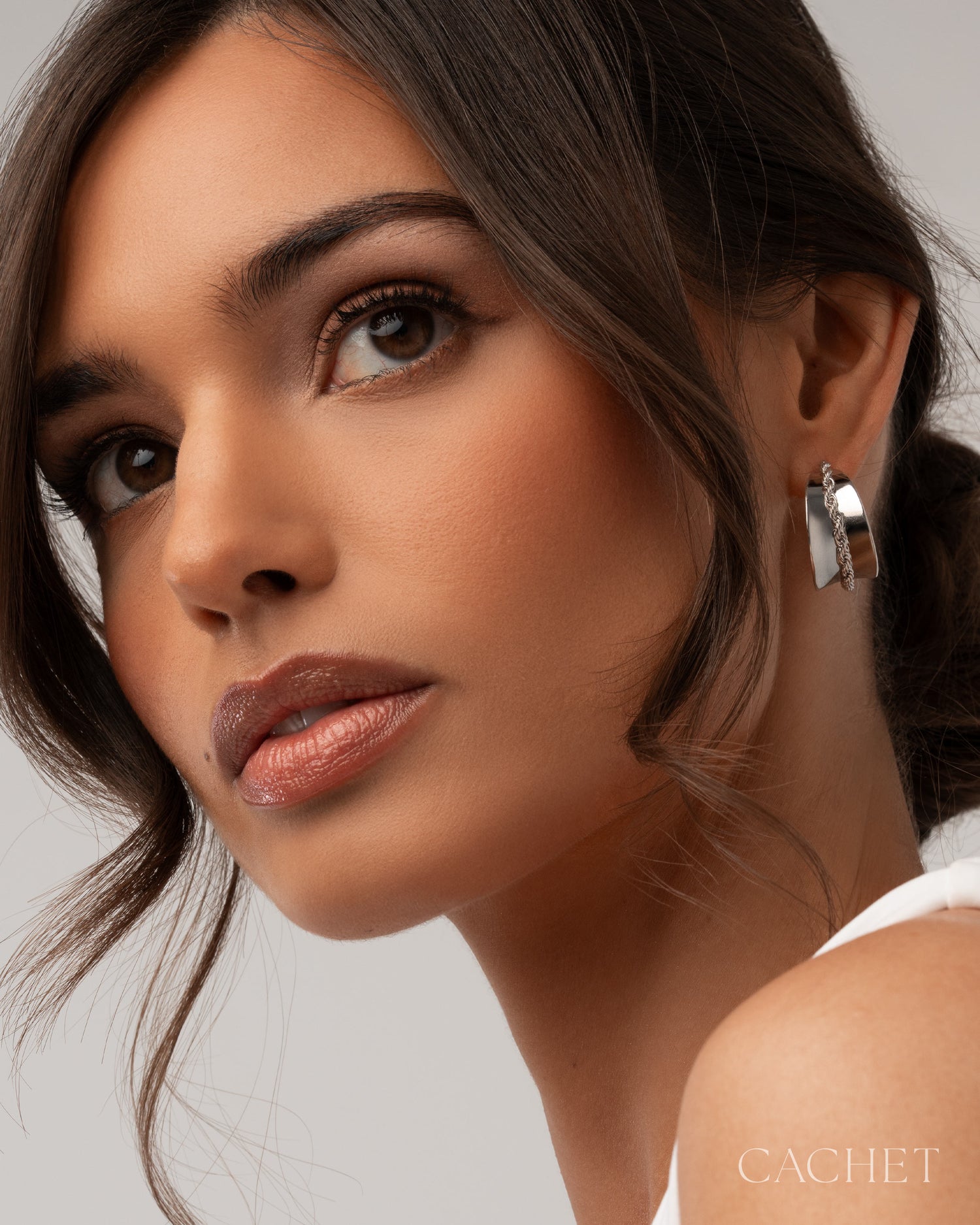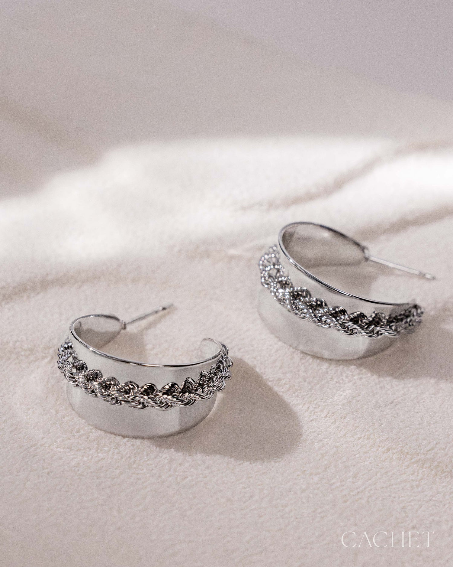 Like a moment of pure joy, the earrings Bonheur curve around the ear with a soft, radiant glow and tactile braided texture that feels effortlessly blissful.