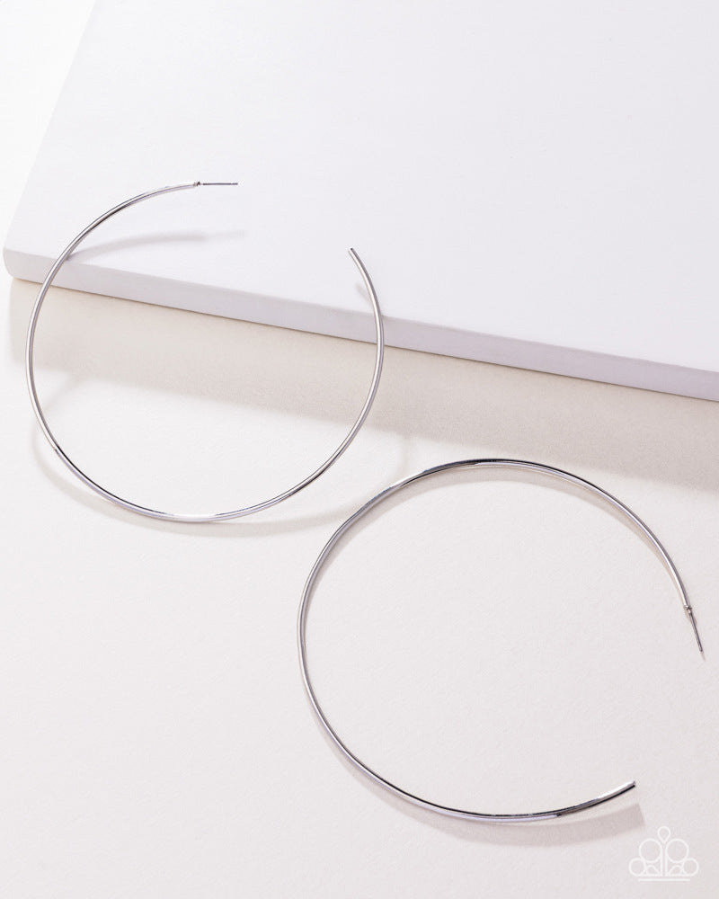 A classic silver bar curls into an outrageously oversized hoop for a trendsetting look. Earring attaches to a standard post fitting. Hoop measures approximately 4" in diameter.