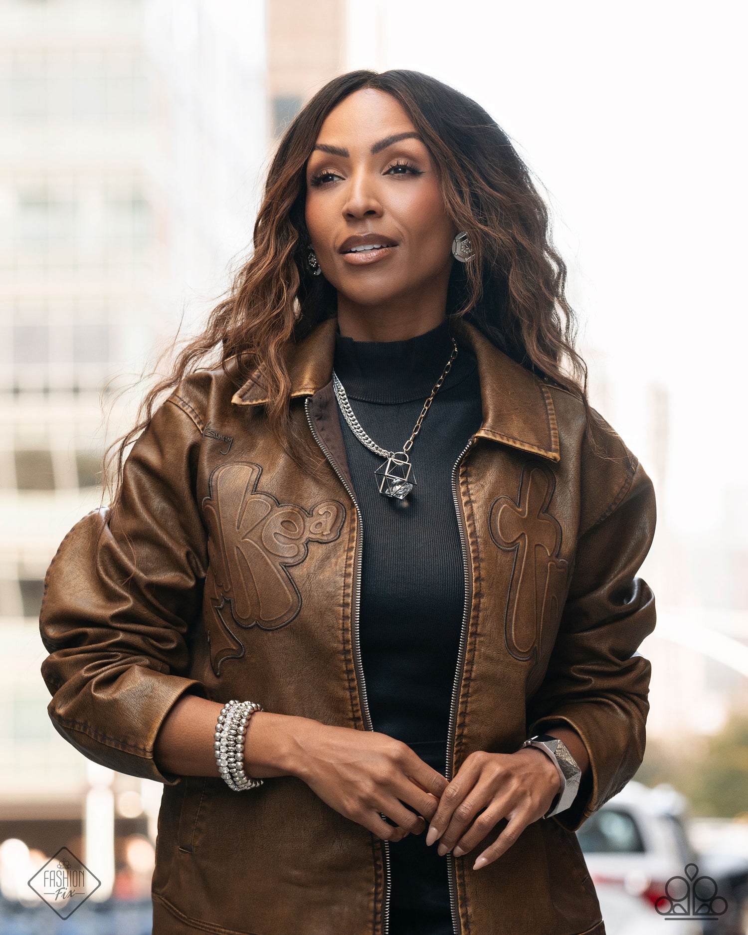 Featuring ribbed textured, an oversized silver hexagonal pendant is lined with white rhinestones and additional hexagonal layers, coming to a point at the center of the ear for a geometrically, edgy look. Earring attaches to a standard post fitting.