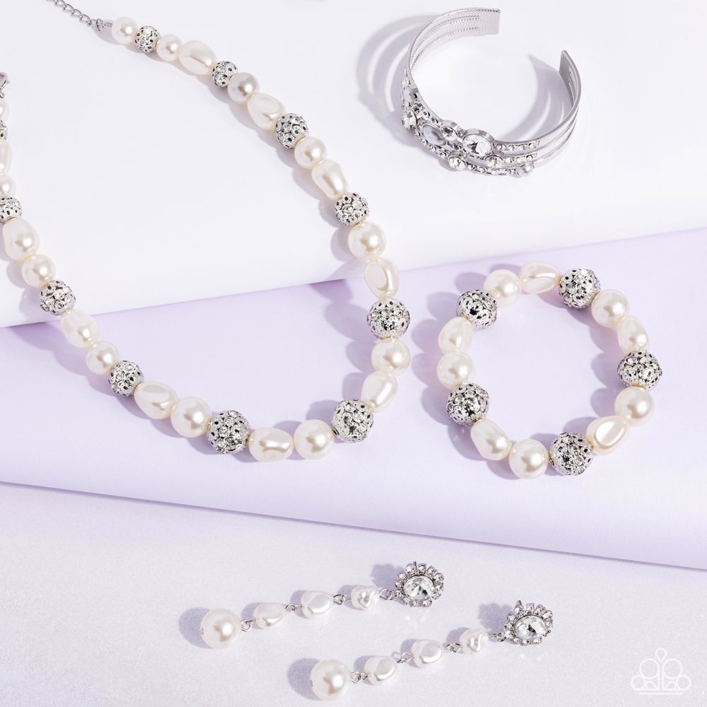Timeless and classic yet sophisticated and versatile, the Fiercely 5th Avenue Collection features elegant designs and traditional metal finishes. Never one to shy away from a bit of sparkle, the Fiercely 5th Avenue fan is a powerhouse professional who accessorizes strategically – creating a polished look for the office that easily transitions to an elegantly glamorous after-hours style. Includes one of each accessory featured in the Fiercely 5th Avenue Trend Blend in November's Fashion Fix: Necklace: "Posh Pattern - White" (P2ST-WTXX-179GF) Post Earring: "Modish Motif - White" (P5PO-WTXX-478GF) Bracelet: "High-Class Headline - White" (P9RE-WTXX-648GF) Bracelet: "Classy Chance - White" (P9RE-WTXX-655GF)