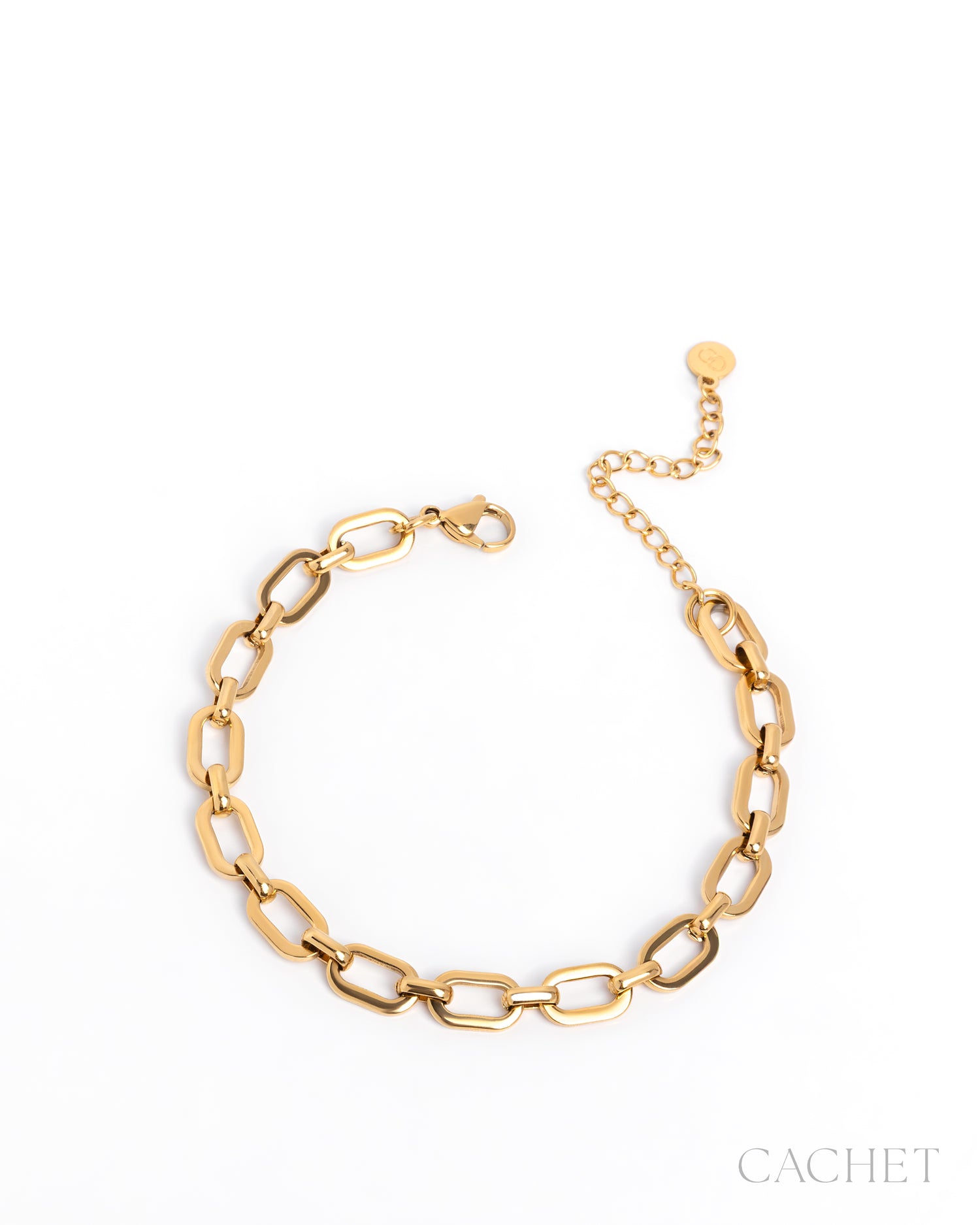 Premium Stainless Steel Base and 18K Gold PVD Plating. Chain measures approximately 7" in length. Features an adjustable clasp closure. Features a chain extension approximately 2" in length.