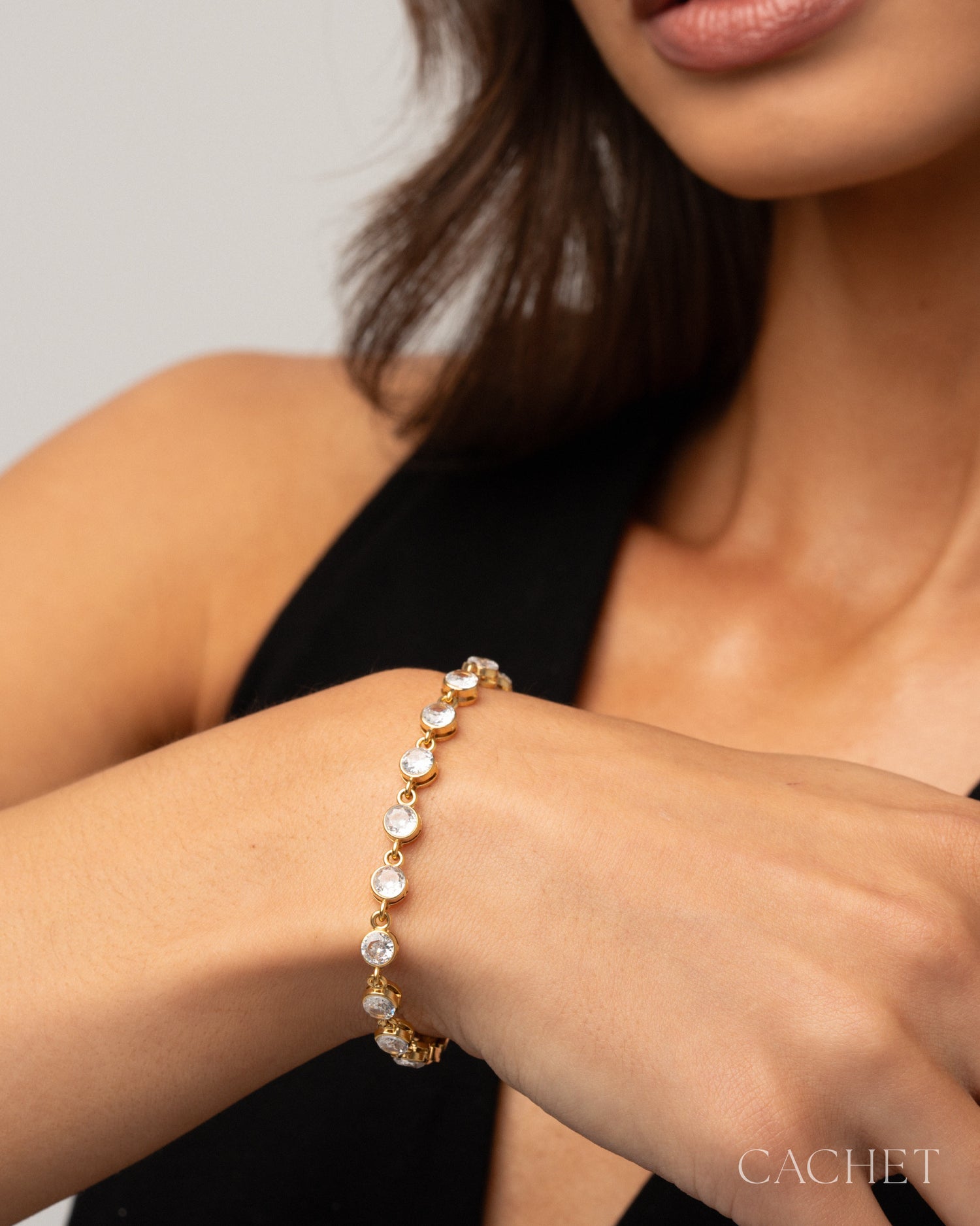 Like a dream made tangible, the bracelet âOuraeâ circles the wrist with luminous, high-end cubic zirconia radiance.