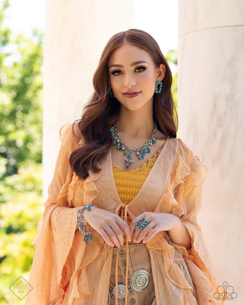 Authentic designs and handcrafted pieces are staples of the Simply Santa Fe Collection. Featuring patterns and elements inspired by nature, these earthy designs tend to have a little more detail. Those free spirited collectors who have an appreciation for the creative process and delight in the sentimental stories behind their favorite accessories will feel right at home with the Simply Santa Fe Collection. Includes one of each accessory featured in the Simply Santa Fe Trend Blend in September's Fashion Fix: Necklace: "Wild West Whimsy - Blue" (P2SE-BLXX-575CP) Post Earring: "Wild West Wonder - Blue" (P5PO-BLXX-206CP) Bracelet: "Wild West Wardrobe - Blue" (P9SE-BLXX-465CP) Ring: "Wild West Whisper - Blue" (P4SE-BLXX-289CP)