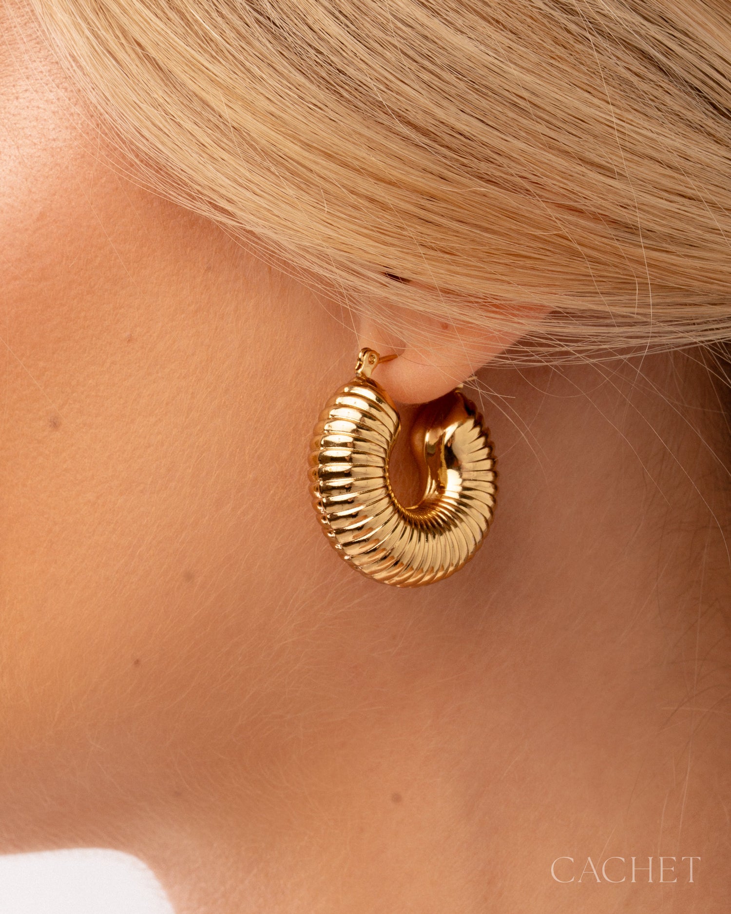 Featuring commanding crimped texture, the earrings "Strata" curl around the ear, embodying depth, distinction, and a timeless, sculpted elegance.