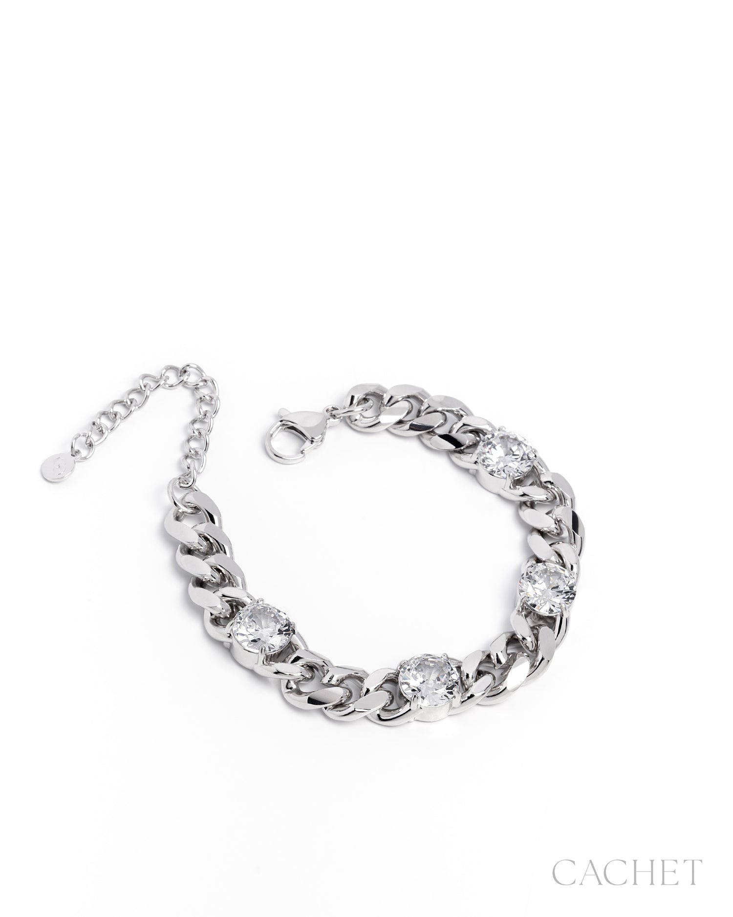 Like strength softened by dreamy softness, the bracelet Tirzae drapes the wrist in a bold cascade of polished links, each one punctuated by a luminous cubic zirconia glow for a quiet resolve.