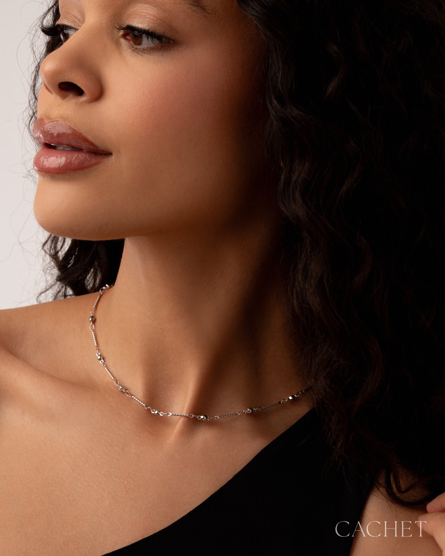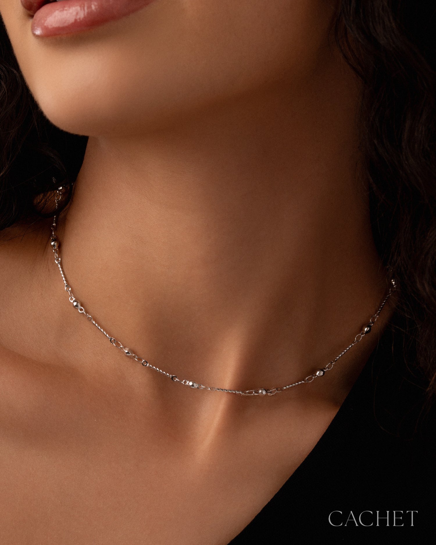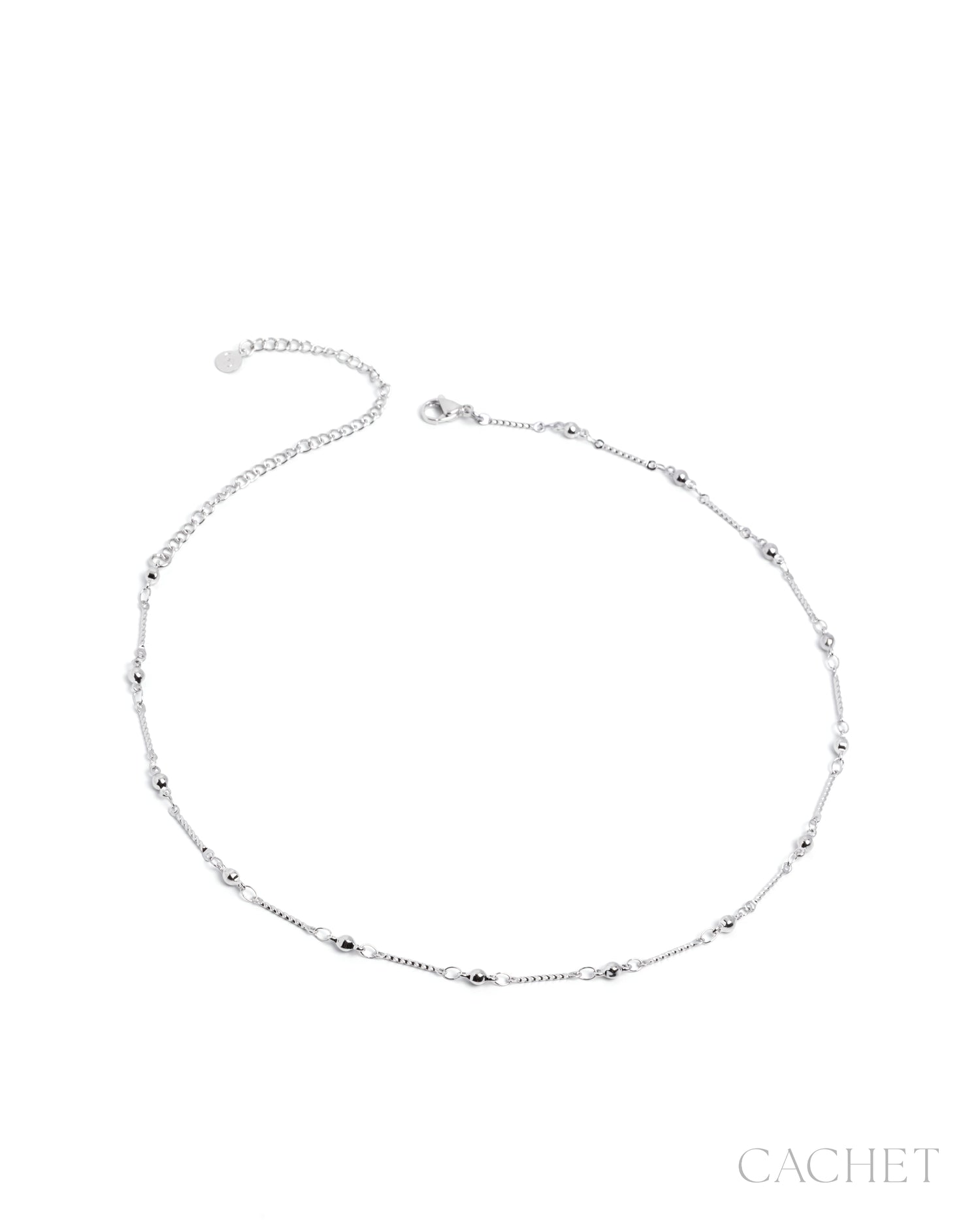 Like calm settling over still water, the choker "Tranquil" rests along the neckline in a delicate pattern of polished spheres and textured bars, each one spaced with effortless serenity for a look that feels quietly at ease.